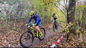 Onder een frisse novemberzon blaast juryvoorzitter Jacob Nieborg hard op de fluit. Het startsein klinkt voor een nieuwe groep mountainbikers ...