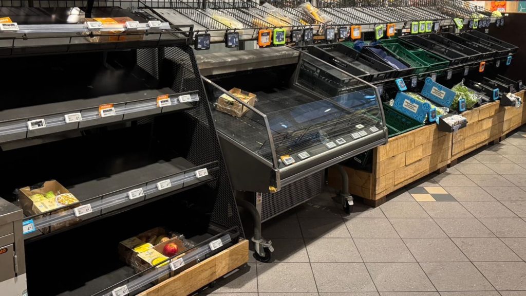Volgens verschillende supermarktketens is er sprake van vertragingen, waardoor sommige schappen tijdelijk leger zijn dan gebruikelijk. Het gaat met name om verse producten en dagelijkse boodschappen. Van structurele tekorten is volgens de winkels geen sprake.