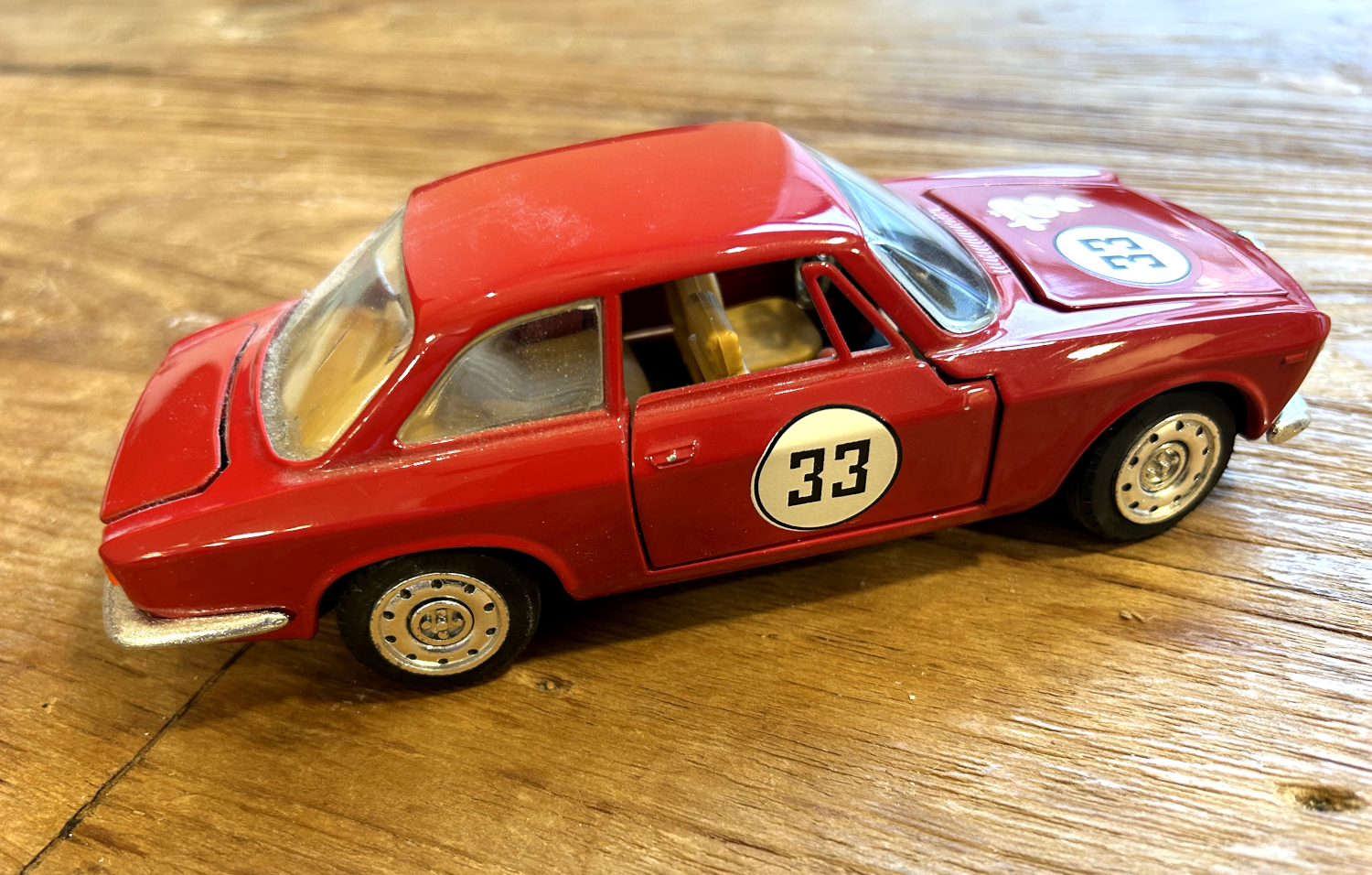 Model Alfa Romeo GT Junior. De échte wagen staat op de brug bij Van Ark…
