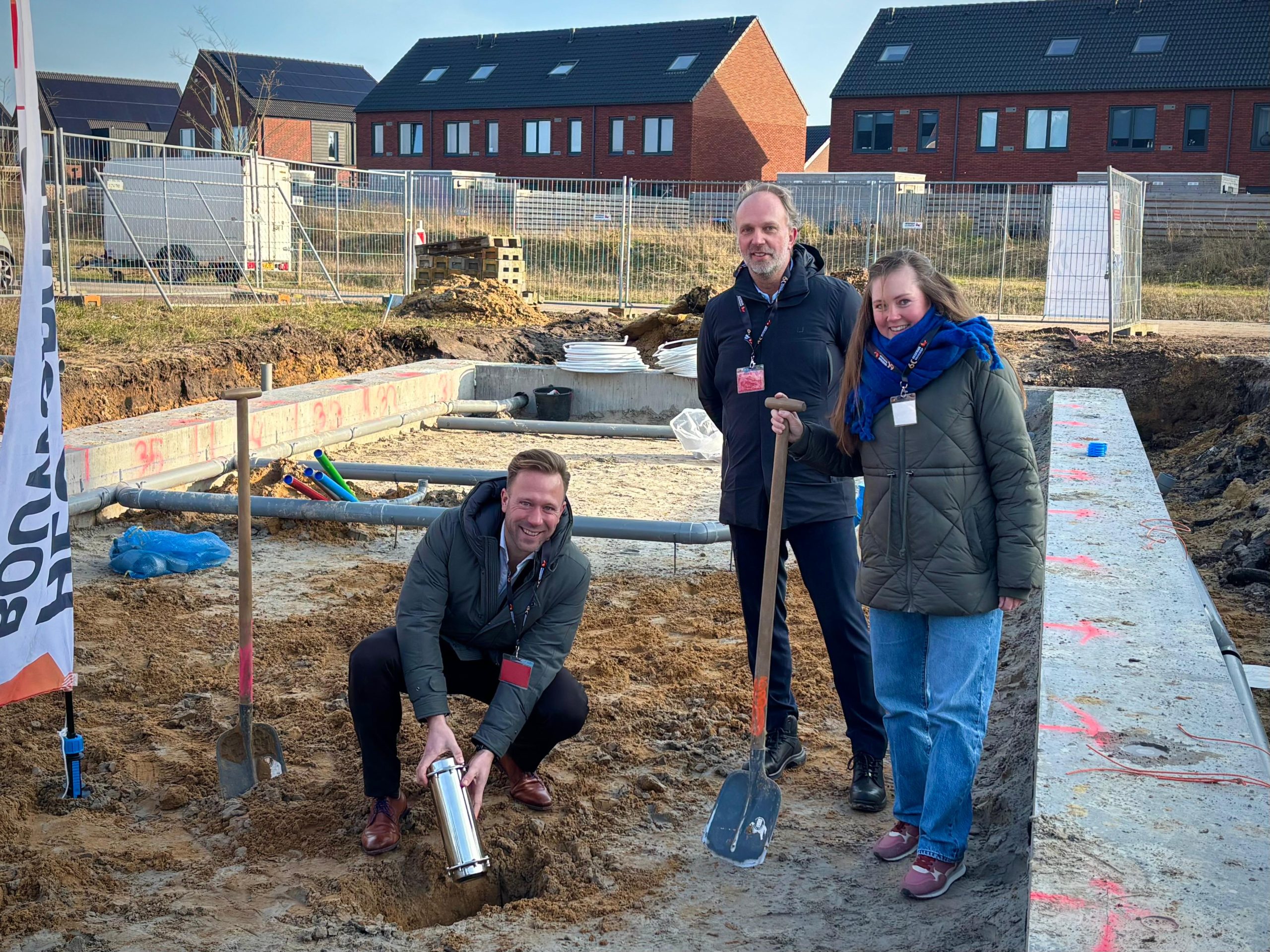 Tijdens het startmoment werd een tijdcapsule onder de woningen geplaatst. Akker en Verhoogt voegden een persoonlijk kaartje toe. “We hebben opgeschreven dat we ernaar uitkijken om hier te komen wonen en hopen dat onze zoon veel nieuwe vriendjes zal maken in de wijk,” zegt Akker glimlachend.