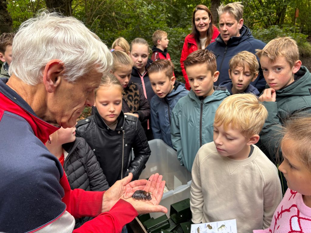 Een veldmuis, dwergmuis of toch een bosspitsmuis: de hele week staat het diertje al centraal op samenwerkingsschool De Groene Borg in Kornhorn. Het is één van de speciale projectweken die de school naast hun reguliere lesprogramma organiseert. De kinderen leren niet alleen in de klas over de muis, maar ook buiten in het Curringherveld. Donderdagochtend gingen groep 6, 7 en 8 samen met natuurkenners Nico Boele, Rob Heringa en Jan Vroom het bos in, op zoek naar echte muizen.